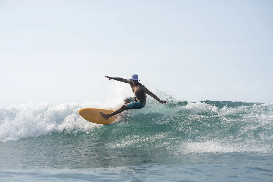 By reducing distractions such as sun reflections and unfortunate wind conditions, our surf hats foster increased focus, enabling you to fully engage with the surfing experience and the ocean's rhythm.