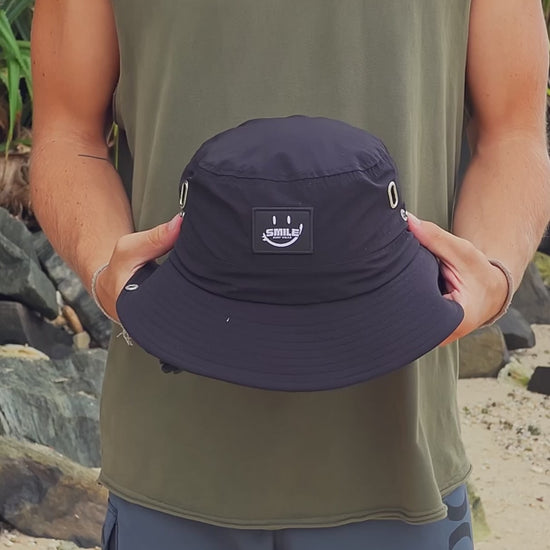 SmileReef is the world’s first surf hat with a hidden helmet. It protects your head, shields you from the sun, and is made from recycled ocean plastics.